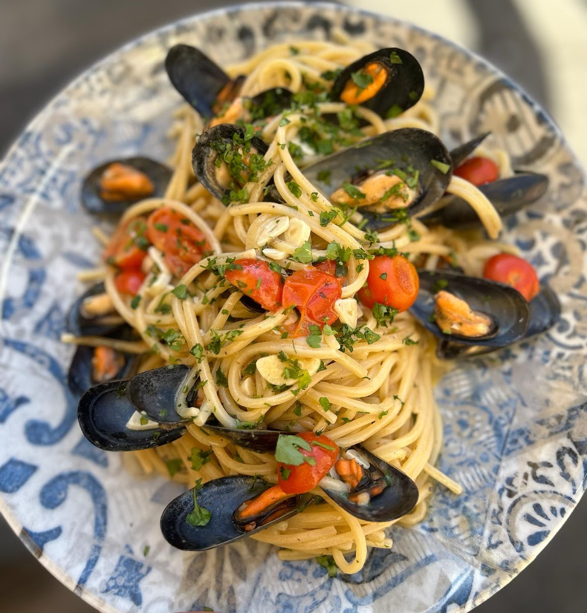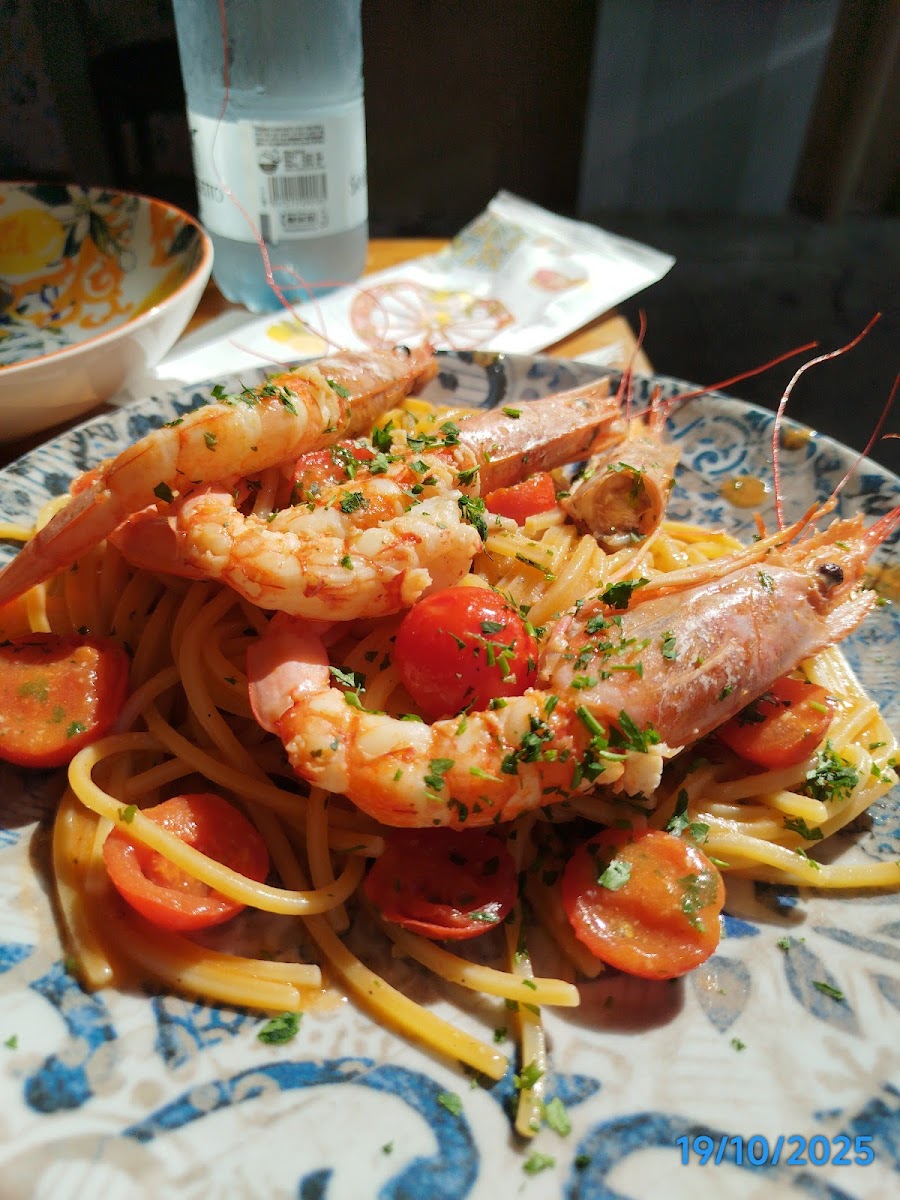 The best seafood spaghetti I have eaten in my life. Lovely service from Alessandro and Leonardo in the kitchen. Just great and a super lively atmosphere in front of the small neighbourhood market.