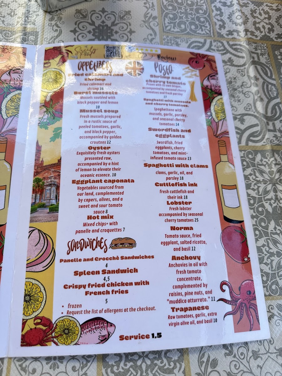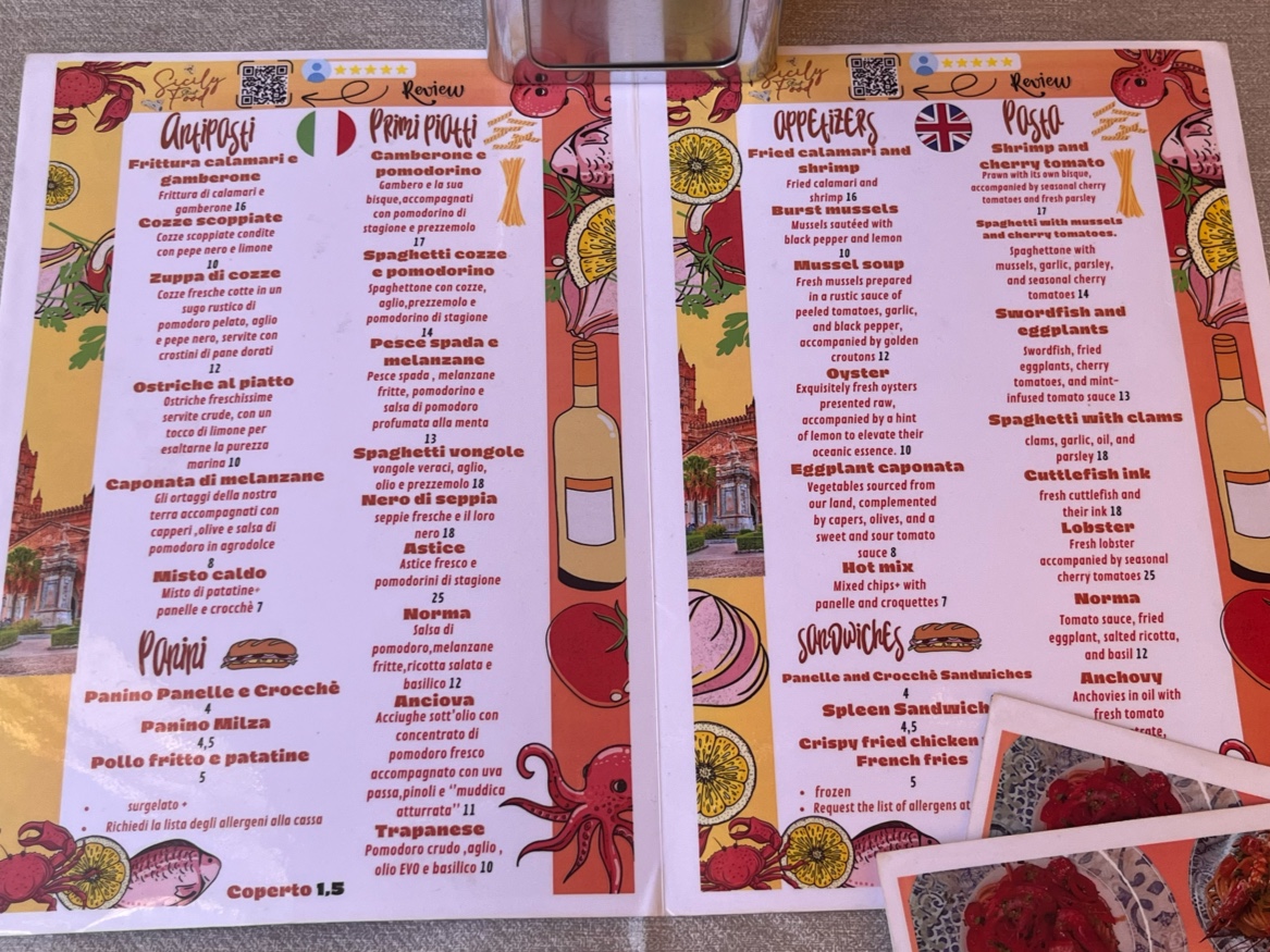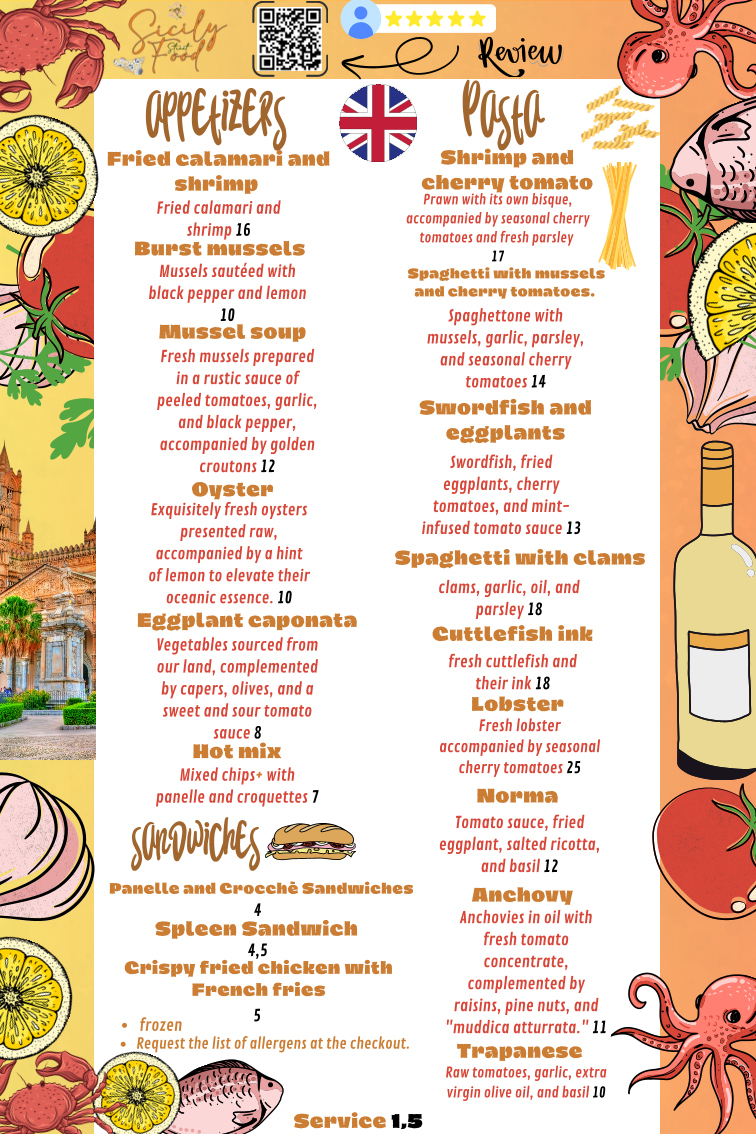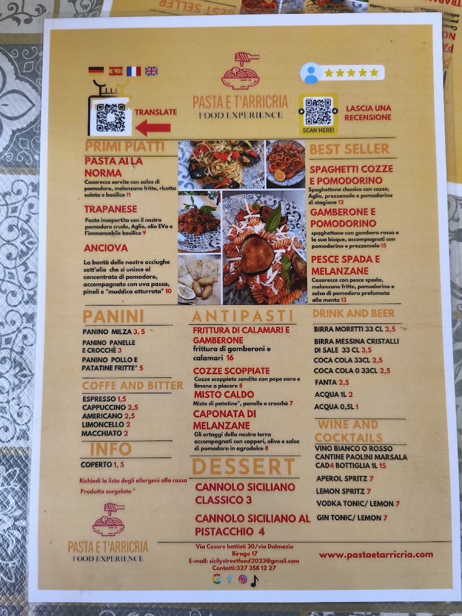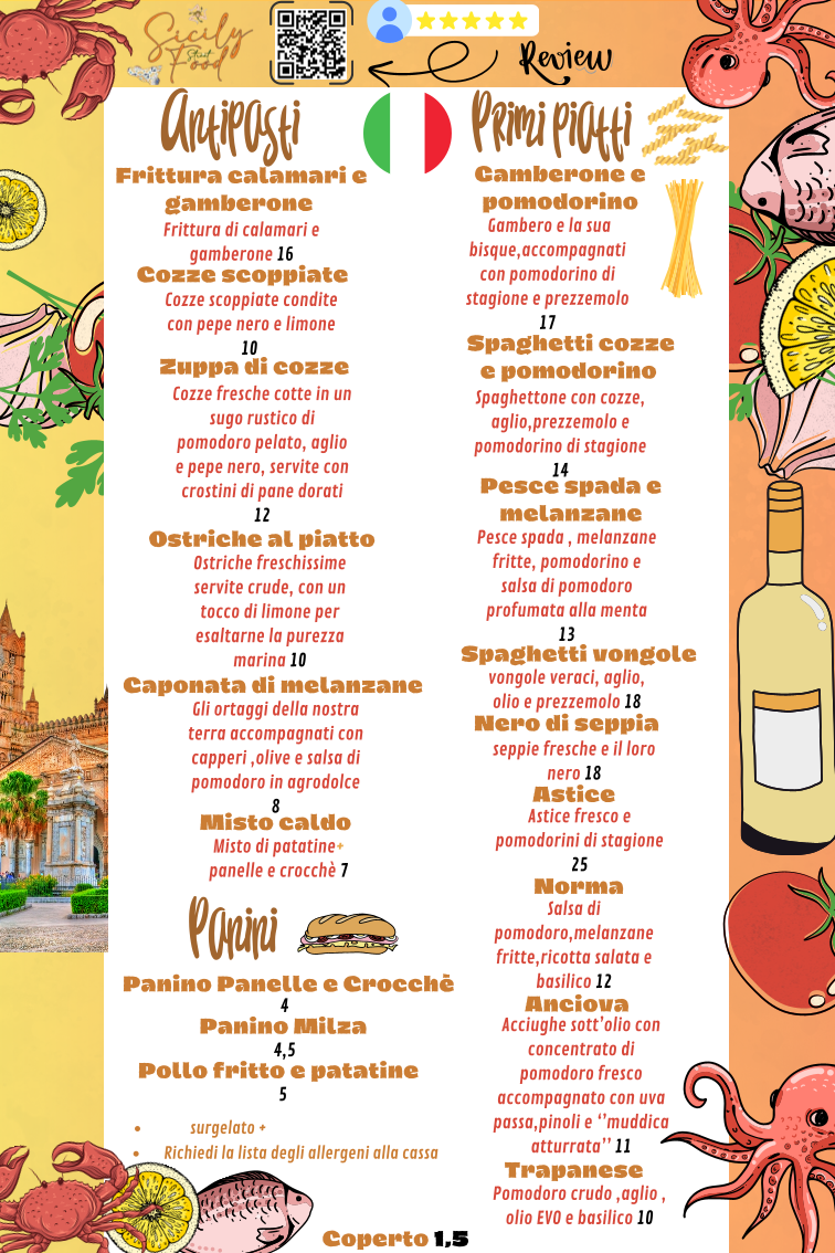Welcome to Sicily Street Food and Restaurant, a hidden gem nestled beside the lively Ballarò market in Palermo. This quaint eatery boasts a menu brimming with authentic Sicilian flavors. Start your culinary journey with fried calamari and shrimp for €16 or savor the rich taste of mussel soup steeped in rustic tomatoes and garlic for €12. For pasta lovers, the spaghetti with mussels combines briny goodness with cherry tomatoes for only €14. The dishes are crafted with fresh, locally-sourced ingredients, ensuring each bite bursts with flavor.